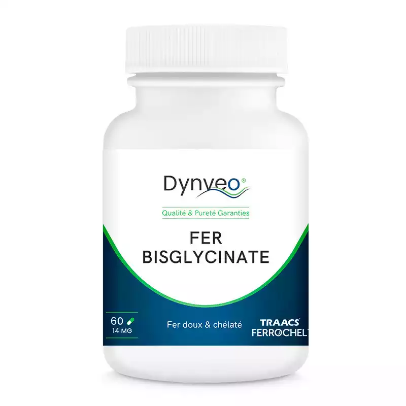 Le fer bisglycinate contribue à la formation normale de globules rouges et d’hémoglobine, favorise le transport normal de l’oxygène dans l’organisme, et aide à réduire la fatigue tout en maintenant un métabolisme énergétique normal.